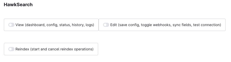 In order to provide access control to the various capabilities in the plugin, there is a new section in the roles interface for setting access permissions for the HawkSearch plugin. In order to get to the Roles, navigate to Settings -> Users & permissions -> Roles -> Create role. Scroll down to the bottom and you'll see these options: