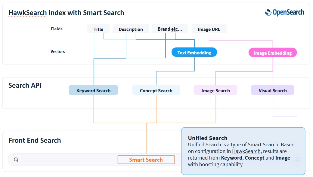 Unified Search seamlessly integrates Keyword Search, AI-powered Concept Search, and Image Search into a single, powerful search experience. By combining these search capabilities, Unified Search enhances discoverability, reduces zero-result occurrences, and improves result relevance, ensuring a frictionless and efficient search experience for users.
