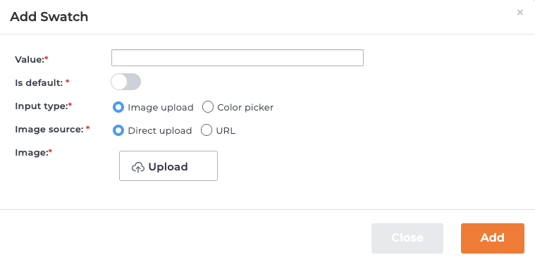 | Image source | If the input type is Image upload then you can either upload it and and HawkSearch will host the image or you can enter the URL to the image. |